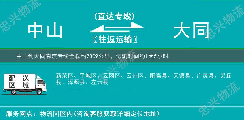 歡迎來(lái)電咨詢中山到大同物流專線相關(guān)信息,天天發(fā)貨,全程3-7天可將您的貨物送至大同全市:平城區(qū)、靈丘縣、天鎮(zhèn)縣、云州區(qū)、渾源縣、左云縣、云岡區(qū)、廣靈縣、新榮區(qū)、陽(yáng)高縣、。